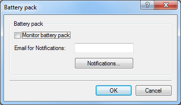 Click on the button Battery Pack and activate the checkbox Monitor Battery Pack. Define a valid e-mail address for transmitting status notifications.