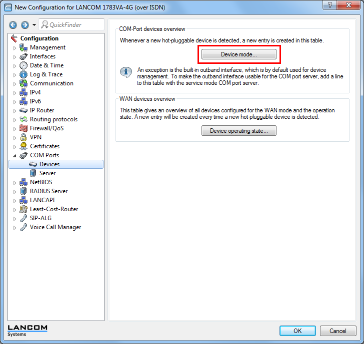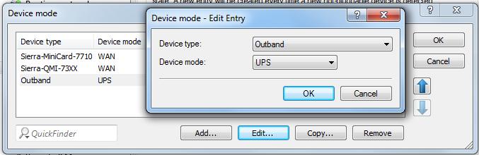 Configure the device mode via . Click on device mode and add a new table entry or edit an existing entry.