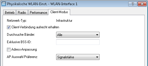 LANconfig: Wireless LAN / Allgemein / Physikalische WLAN-Einstellungen / Client-Modus