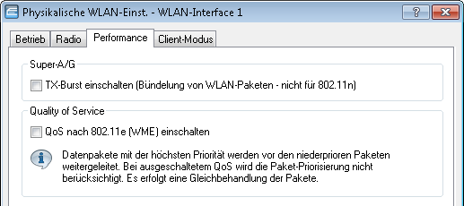 LANconfig: Wireless LAN / Allgemein / Physikalische WLAN-Einstellungen / Performance