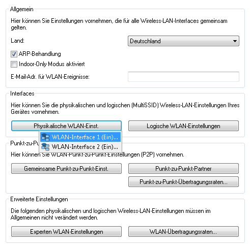 Neben den allgemeinen WLAN-Parametern gelten eine Reihe von Einstellungen für jedes WLAN-Modul des APs speziell.
