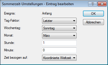 - Lokale Normalzeit oder UTC: Definiert die Zeitzone, auf die sich die Angaben beziehen.