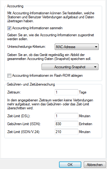 Bei der Konfiguration des Accounting werden die allgemeinen Parameter festgelegt: