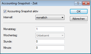 Bei der Konfiguration des Snapshots wird das Interval festgelegt, in dem die Accounting-Daten in einem Snapshot zwischengespeichert werden:
