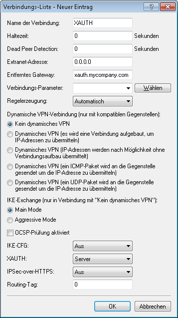 - Aus: Bei der Verbindung zu dieser Gegenstelle wird keine XAUTH-Authentifizierung durchgeführt.