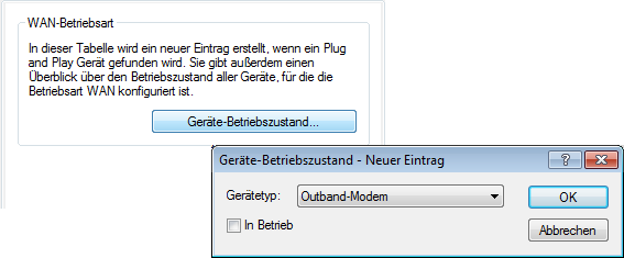 Die Tabelle mit den WAN-Geräten dient nur als Status-Tabelle. Alle Hotplug-Geräte (über USB oder CardBus angeschlossen) tragen sich selbst in diese Tabelle ein.
