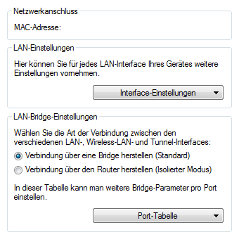 In der Standardeinstellung wird der Datenverkehr zwischen LAN und WLAN „gebrückt“, also Layer-2-transparent übertragen. Dabei verläuft der Datenverkehr zwischen dem drahtgebundenen und den drahtlosen Netzwerken nicht über den IP-Router. Damit stehen auch die im IP-Router integrierten Funktionen Firewall und Quality-of-Service nicht für den Datenverkehr zwischen WLAN und LAN zur Verfügung. Um diese Möglichkeiten dennoch zu nutzen, werden die WLAN-Schnittstellen in den „isolierten Modus“ versetzt, der Datenverkehr wird gezielt über den IP-Router geleitet.