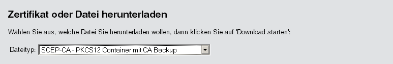 - Wählen Sie dann als Dateityp nacheinander die beiden Einträge für die SCEP-CA und bestätigen Sie mit Download starten: