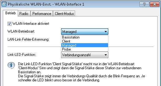 LANconfig: Wireless LAN / Allgemein / Physikalische WLAN-Einstellungen / Betrieb