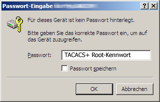 Anmerkung: Der Benutzer “root” ist der einzige Benutzer, der nach Authentifizierung über TACACS+ automatisch die vollen Rechte eines Supervisors verfügt und somit die Konfiguration ohne Wechsel des Rechteniveaus bearbeiten darf. Wenn die Authorisierung benutzt wird entscheidet dies der TACACS+-Server.