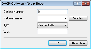 Anmerkung: Die mögliche Länge des Optionswertes entnehmen Sie bitte dem entsprechenden RFC bzw. bei herstellerspezifischen DCHP-Optionen der jeweiligen Herstellerdokumentation.