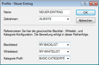 - Whitelisted Name des WhiteList-Profils das für dieses Content-Filter-Profil während