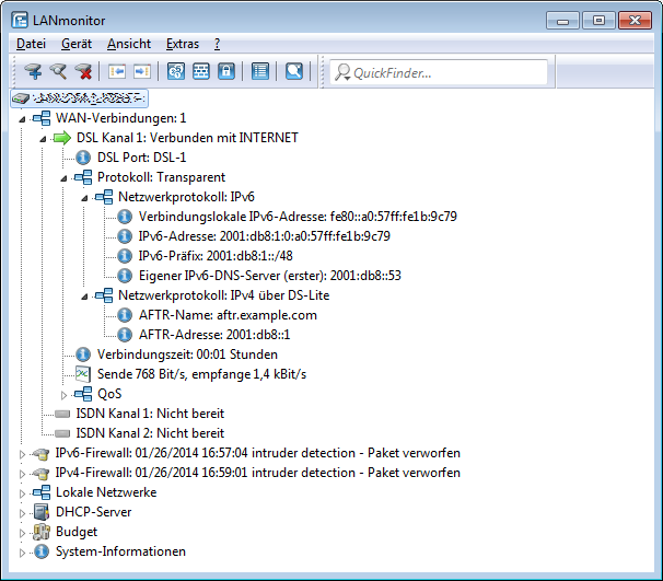 Über den LANmonitor lassen sich die Status-Tabelle und die Anzahl der aktuellen DS-Lite-Verbindungen darstellen: