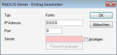 - Gültige Port-Nummer, im Allgemeinen 1812 für Zugangs- und 1813 für Kontoverwaltung.
