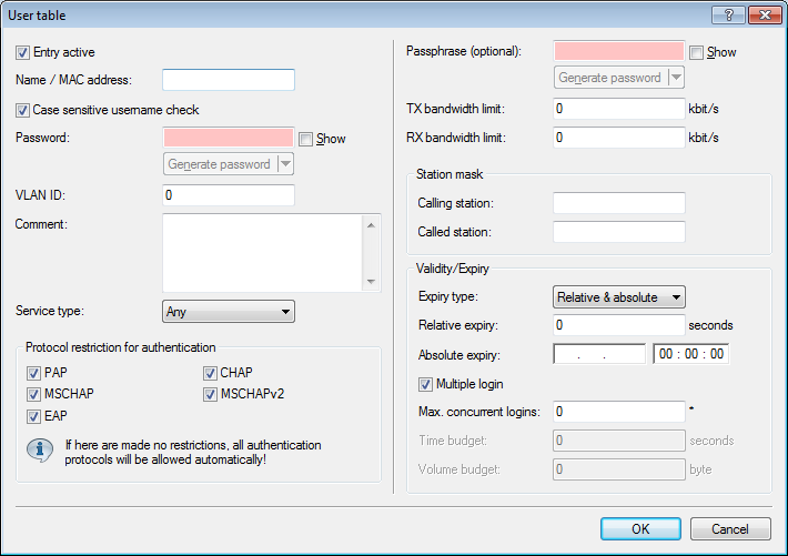 As of LCOS 8.84, you have the option to enable or disable individual RADIUS user accounts. In LANconfig, this is done under using the option Entry active. In this way, you can temporarily disable individual user accounts without deleting the account entirely.