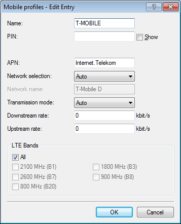 Mobile profiles enable you to set which frequency bands the LTE/4G modem should use. Navigate to , .