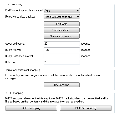 - This is where you enable or disable DHCPv6 snooping. The following options are possible: