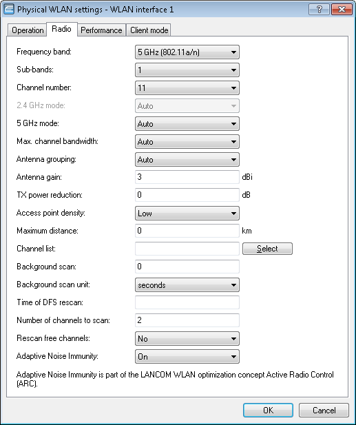 In LANconfig you access the DFS settings under , then click Physical WLAN settings and select the Radio tab.