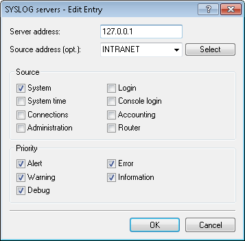 As of LCOS version 9.20, the addresses of a SYSLOG server can be entered in the form of an IPv6 address or a DNS name.