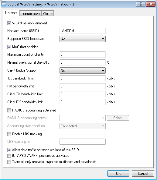 In LANconfig, go to the view Wireless LAN > General > Logical WLAN settings. On the tab "Network", enable the check box RADIUS accounting activated.