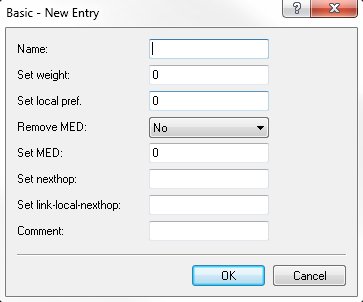 The device modifies the multi-exit discriminator (MED) of an NLRI to the value specified here. If the NLRI contains no MED, the device creates this attribute.