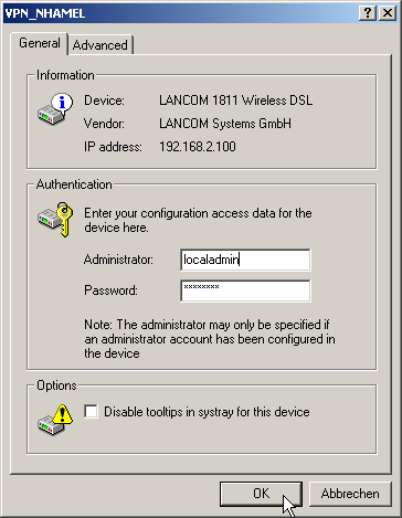 User information can be entered in LANmonitor separately for each device. To do this, click with the right-hand mouse key on the required device, select the Options point from the context menu and enter your user data.