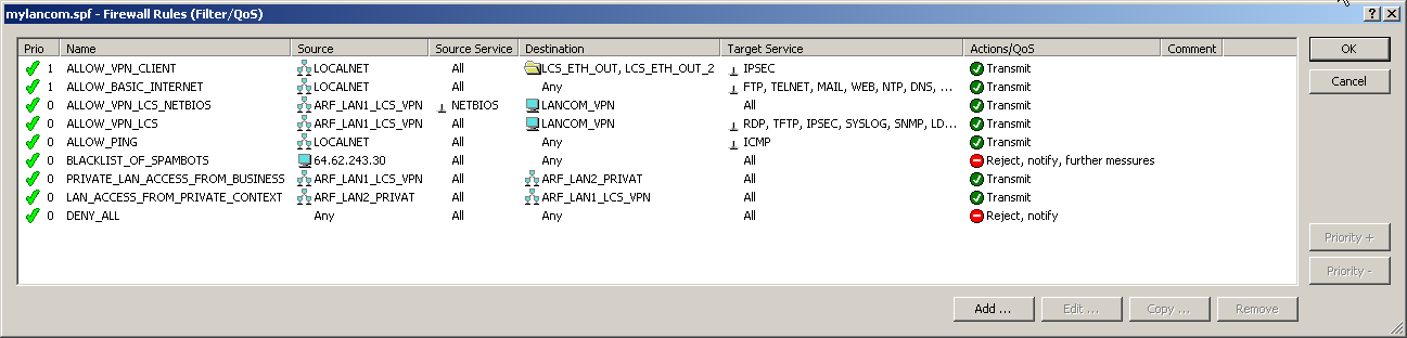 - Two interlinked arrows: If this firewall rule applies, please observe other rules.