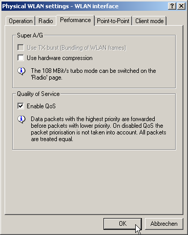 LANconfig: Interfaces / Wireless LAN / Physical WLAN settings / Performance