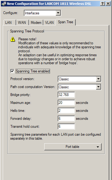 LANconfig: Interfaces / Span. Tree
