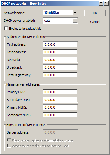- If '0.0.0.0' is entered, the DHCP server determines the relevant first and last addresses itself using the settings for the IP network (network address and netmask).