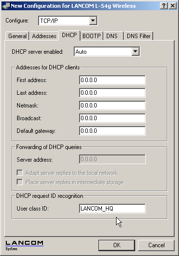 The DHCP client in LANCOM can insert additional information in the DHCP request sent, which simplify request recognition within the network.