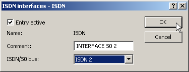 For users who are connected by an ISDN line, the interface that is used is configured globally. An ISDN T interface (external) or even an ISDN TE interface (internal) can be configured. The latter is the case if users of an upstream PBX are to be managed as local users.