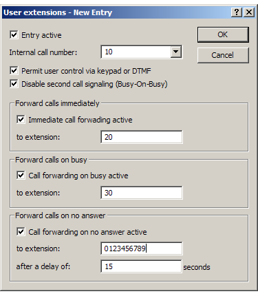 - Enabling user control via keypad or DTMF This activates or deactivates the option for users to configure their settings via the telephone.