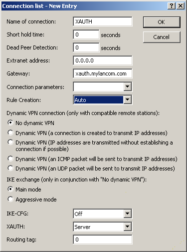 - Off: No XAUTH authentication is performed for the connection to this remote site.