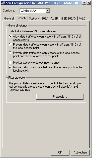 Note: Communications between clients in a logical WLAN is controlled separately by the logical WLAN settings (Inter-Station-Traffic). If the Inter-SSID-Traffic is activated and the Inter-Station-Traffic deactivated, a client in one logical WLAN can communicate with clients in another logical WLAN. This option can be prevented with the VLAN settings or protocol filter.