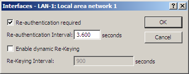 - Regularly update authentication Here you activate regular re-authentication. If a new authentication starts, the user remains registered during the negotiation. A typical value as a re-authentication interval is 3,600 seconds.