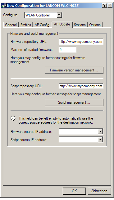 WEBconfig: Setup / WLAN Management / Central Firmware Management