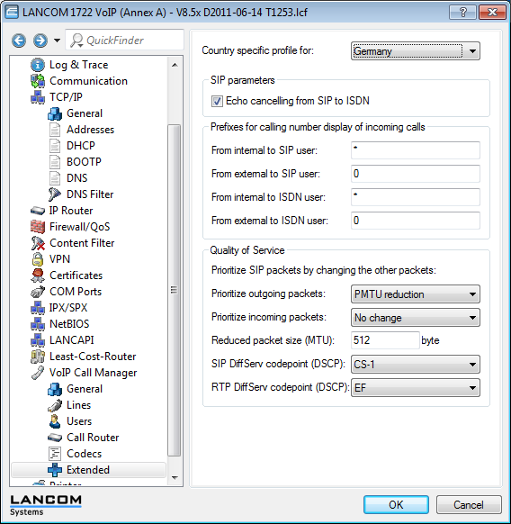 LANconfig: Voice Call Manager / Advanced