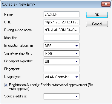 is entered, e.g. /CN=LANCOM CA/O=LANCOM SYSTEMS/C=DE