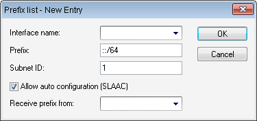Set the value for the Prefix to "::/64" in order to accept the prefix issued by the provider automatically and in its entirety.