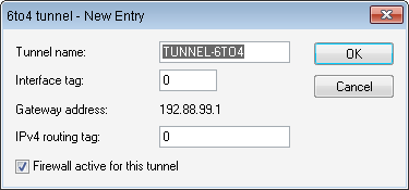 In the field Router, select from the list the name of the tunnel that you defined earlier, e.g. in the example above "TUNNEL-6TO4".