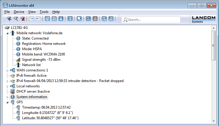 As of LCOS version 8.80, LANmonitor gives you the option to display the time received from the GPS network.