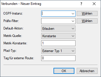 Das Weiterverteilen von Routen, die vom Betriebssystem automatisch in die Routing-Tabelle eingetragen werden, konfigurieren Sie unter Verbunden.