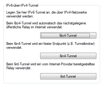 Wechseln Sie im Konfigurationsdialog in die Ansicht und klicken Sie auf 6to4-Tunnel.