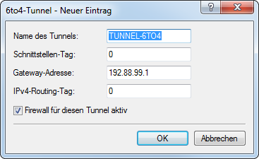 Klicken Sie auf Hinzufügen, um einen neuen 6to4-Tunnel anzulegen.