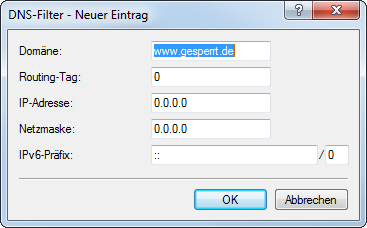 - Mit der Filterliste können Sie schließlich den Zugriff auf bestimmte Namen oder Domains sperren. Um die Domain (in diesem Fall