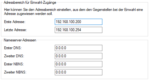 Die Rechner im Einkauf bekommen über die Liste der Adressen für Einwahlzugänge (LANconfig: ) eine IP-Adresse aus einem bestimmten Adressbereich zugewiesen (z. B. 192.168.100.200 bis 192.168.100.254).