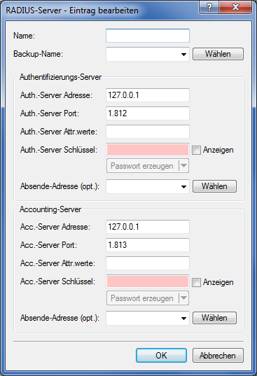 In manchen Anwendungen sollen die Benutzerdaten nicht im Gerät gespeichert werden, sondern in einem externen, zentralen RADIUS-Server. In diesem Fall muss der Public Spot zur Überprüfung der Benutzerdaten mit diesem externen RADIUS-Server kommunizieren.