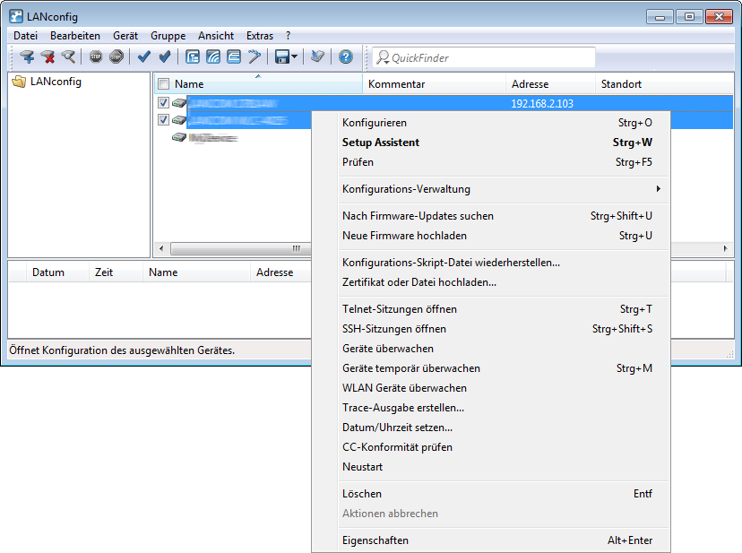 - KonfigurierenÖffnet für die ausgewählten Geräte den Konfigurationsdialog unter LANconfig.