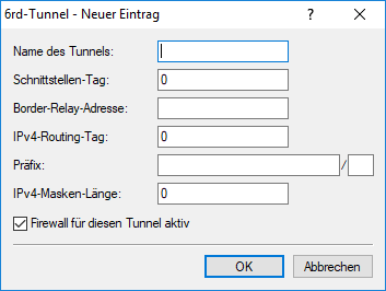 Anmerkung: Wird das 6rd-Präfix über DHCPv4 zugewiesen (d.h. die Border-Relay-Adresse ist leer), so wird dieses Feld ignoriert bzw. kann leer bleiben.